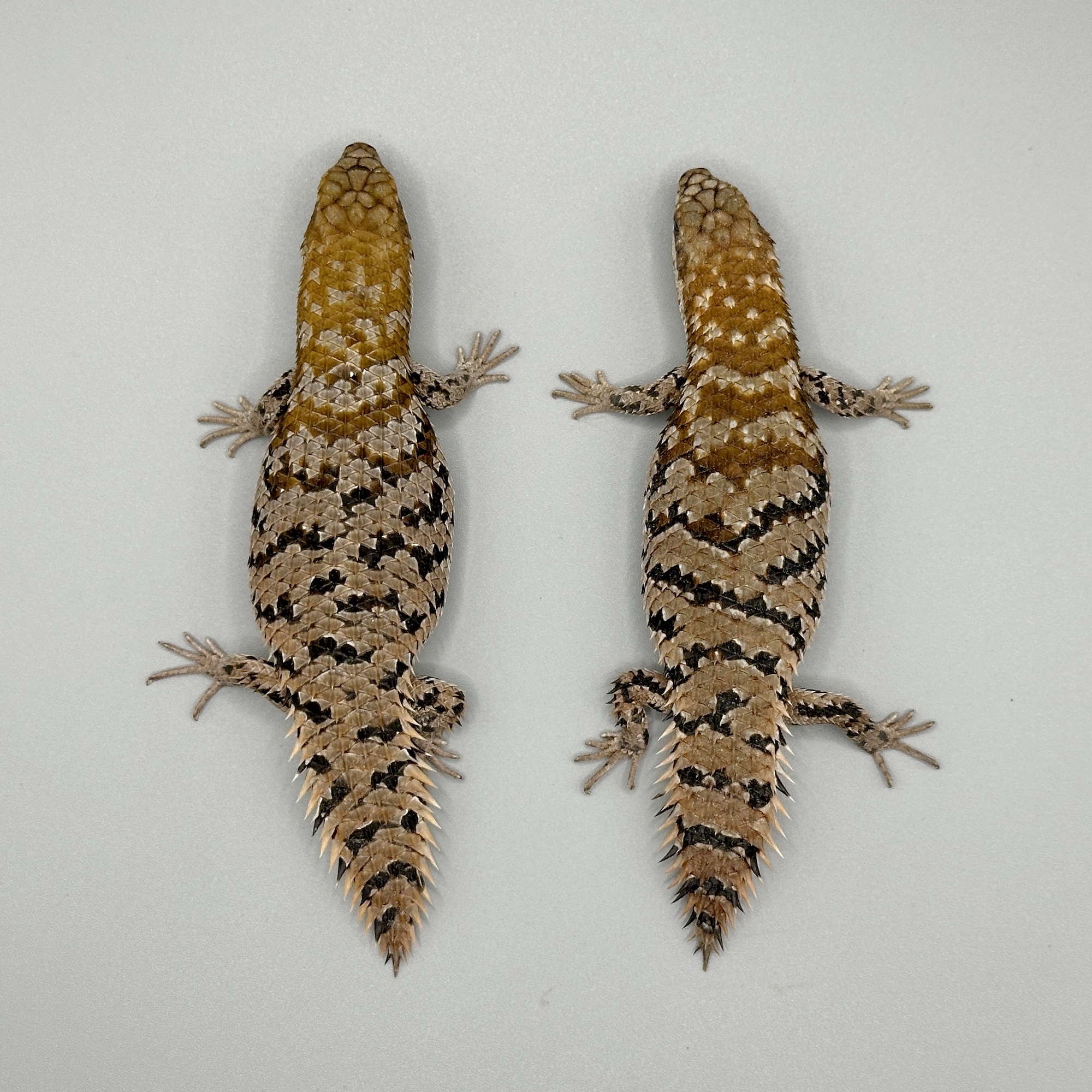 出産経験有りの実績ペアとなります(1匹/2025年)/オスメスともに両親は多産/トーンの似ているベージュ系ブラウンベース個体同士でペアリングしています/いずれも体色はライトブラウンにバランス良くブラックのパターンの入った個体です/別血統からのペアとなります