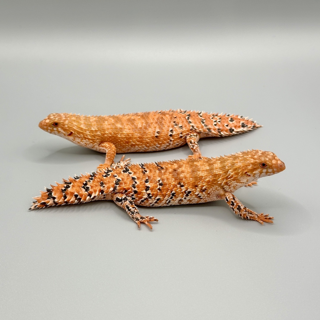 オスはやや濃度のあるオレンジコーラル/メスは淡めのコーラルカラー/いずれも頭部がややホワイトがかった個体となります/オスは母親から頭部の白さを受け継いでいます/メスは両親からやや明るめのトーンを受け継いでいます/別血統からのペアとなります